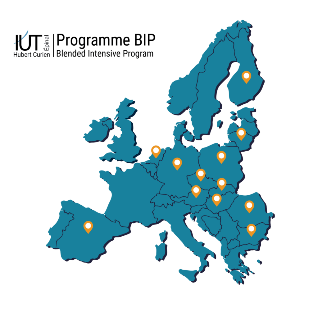 - Mobilité courte hybride (Blended Inensive Program) : Pendant une semaine l’IUT accueille des étudiants de douze nationalités européennes pour réaliser un projet commun. Trente de nos étudiants ont également la chance de profiter de ce type de programme dans les pays partenaires.